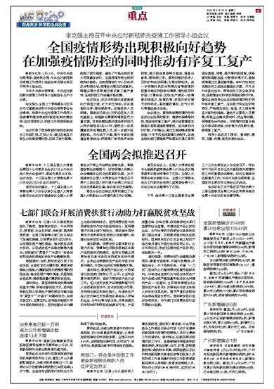 全国疫情形势出现积极向好趋势 在加强疫情防控的同时推动有序复工复产