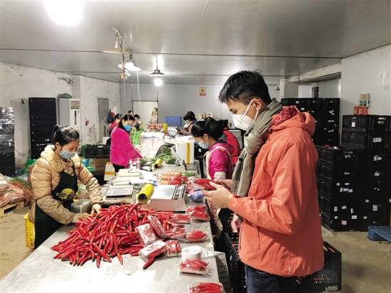 ■朱永铿在市场的加工中心检查分拣包装。 |