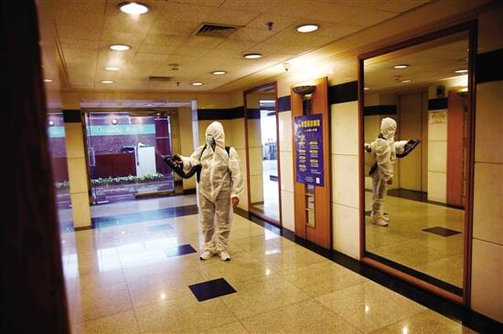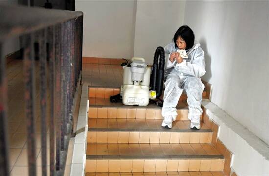 ■电梯间是消毒的重点区域,单是每层楼电梯间的消毒,工作量就很大了。 |