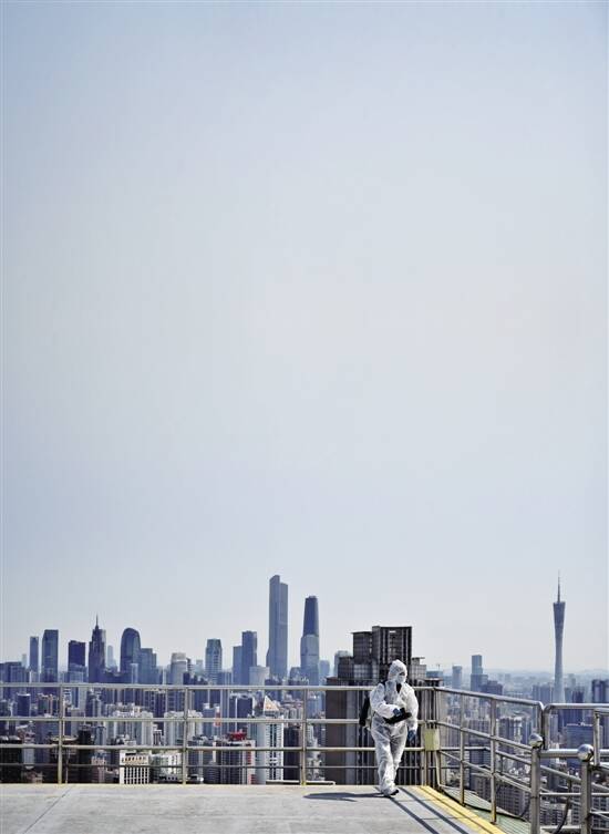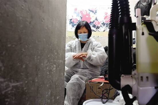爬130层楼、背50斤重的消毒水、穿闷热不透风的防护服,这是在广东国际大厦做消杀的凤姐每天的工作内容。 今年大年初八,凤姐便从老家阳春回到了广州。因为疫情的发展,即将迎来复工的广东国际大厦也面临着巨大的防控压力。凤姐一直负责大厦内鼠虫的消杀,一干就是十几年,“对这里已经有感情了,尤其是这里的保安、电工还有保洁的大姐,我们都是很好的朋友”。 虽然是一份辛苦的体力活,但工作还算稳定,“比在家种地强”,而且儿子女儿现在都在广州打工,身边有了亲人凤姐也就更加安心了。所以一接到经理关于提前复工消毒的电话,凤姐便立即赶了回来。 “以前消杀工作只需要隔几天做一次,现在几乎每天都要进行一次。”凤姐说,因为很多工友在外地没能及时赶回来,重任便一下全都落在了自己一人身上。每天早上8时,凤姐便从海珠区的租屋搭乘公交回到公司,配制消毒药水,换上防护服,背上喷雾器然后爬到63层的楼顶开始一天的工作。 广东国际大厦俗称“63层”,曾是上世纪90年代中国最高的建筑。如今主楼加上两座副楼总共将近130层,里面除了一家五星级的酒店,还有两百多家公司,总计超过一千名员工。公司规定大厦所有的公共区域和大小角落每天都要进行全方位的消毒,这个工作量对于今年51岁的凤姐俨然是挑战。 虽然这两天广州有些降温,但阳光却是特别耀眼。楼顶平台的风有些大,可以远眺到广州塔和珠江新城的林立高楼。“我刚来广州的时候,这些建筑都还没有盖呢。”凤姐一边忙活一边对记者说。十几年过去了,女儿已经成家,儿子也开始打工了。只是三年前丈夫病逝,家里没有了主心骨,凤姐还是备感压力。“没办法,现在人走了,我就得把家里扛起来。”说话的时候,凤姐有些哽咽。 干完一上午的工作,回到工具房的时候凤姐已经满头大汗。“里面衣服都湿透了!”她摘下帽子、护目镜和手套,小心地用洗手液搓了搓双手,然后打开背包从里面掏出了一个面包和一个热水壶。这是凤姐的午饭。因为疫情,公司的食堂暂时关闭了,所以这段时间凤姐都是自己从家里带午餐出来。 女儿本来想给她送饭,但是她拒绝了。“疫情期间,他们公司都还没有上班,我让她在家里好好待着,不要往外面跑。” 刚吃完面包,酒店的保洁大姐就乐呵呵地给她送来了一个苹果。保洁大姐春节期间也一直在酒店加班,出于疫情防控的需要,许多像他们一样的保洁、保安和水电工等工作人员都留了下来。工作比平时更加忙碌,大家却像是家人一样相互照顾,这让凤姐感觉十分温暖。“这次疫情我们也帮不上什么忙,那就把我们自己的工作做好,也算是尽了一份力了吧。”凤姐笑着说。 ■新快报记者 夏世焱/摄影报道