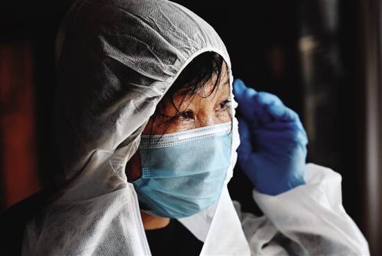 ■经过一上午的工作,穿着防护服的凤姐满头大汗。 |