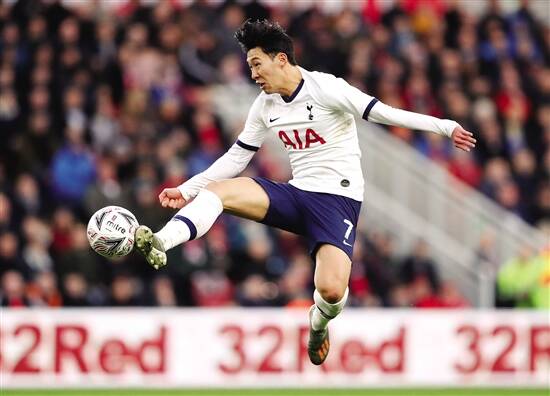 ■热刺队球员孙兴慜在比赛中控球。新华社发 |