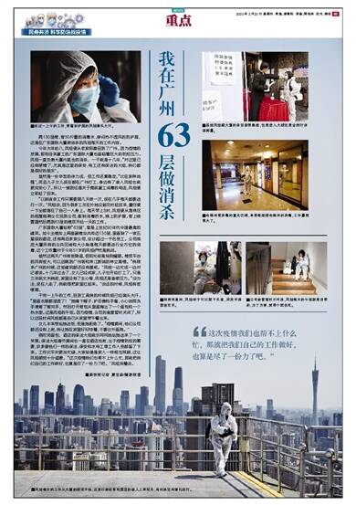 爬130层楼、背50斤重的消毒水、穿闷热不透风的防护服,这是在广东国际大厦做消杀的凤姐每天的工作内容。