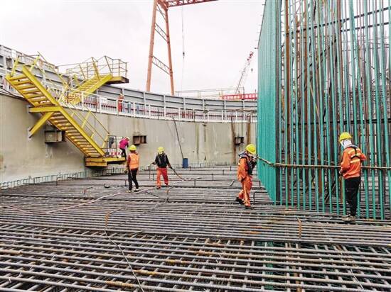 ■施工人员在深中通道伶仃洋大桥西主墩承台作业(2月17日摄)。新华社发 |