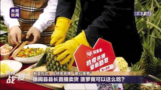 本次活动由羊城晚报、广东省农业农村厅、广东省湛江市徐闻县政府联合拼多多共同发起。直播开始仅半个小时,仅拼多多直播间就吸引了近30万人关注并参与拼单,首批3万件共15万斤菠萝两小时内即告售罄,徐闻县政府及拼多多又紧急补货两万件以满足消费者需求。 作为中国最大的农货上行平台,拼多多于2月10日全网率先上线“抗疫助农”专区。 徐闻县政府相关人士透露,此次选择与拼多多合作,是希望利用“直播+拼团购物”的新电商模式,带领当地果农探索互联网农货上行的新路径,“县长直播出镜,能够助力当地农户的经营思维,打通我们菠萝产业的网络上行”。 ■新快报记者 郑志辉 县长秒变“吃货主播” 两小时卖出15万斤助农菠萝 “徐闻是全国菠萝之乡,占到全国总产量的三分之一”,“菠萝有蘸酱油,酸甜适中,大家可以试试”…… “天呐,一位县长在教我刀工!”一位拼多多用户在直播间里感叹。 2月19日,徐闻菠萝成为拼多多联合央视发起的助农系列直播首个“主角”。用户通过助农专区进入直播间,可以一起观赏“菠萝的海”景观,并可参与9.9元五斤的万人团活动。 短短半个小时,直播间吸引了近30万人关注。最终,截至目前,在活动上线两个小时内,原定3万件菠萝已经全部售罄,又紧急调货了2万件以满足消费者。 用手机屏幕牵起供需两端 菠萝是徐闻的特产,徐闻菠萝种植面积达35万亩、年产量近60万吨,出产菠萝已经占到全国的三分之一,被誉为中国菠萝之乡。 此前,徐闻菠萝主要通过批发商收购的方式覆盖线下渠道进行销售,而在春节假期,批发商的发货和收购暂时停滞,这也给徐闻县农户集体探索新电商创造出了契机。 从2018年开始,拼多多开始在全国尝试“产地直发”的新模式,并建立了中央农货信息处理系统,覆盖全国主要农产品产区,通过大数据来实时监测各地果实的成熟期,并匹配给平台上的5亿消费者。 拼多多上线助农专区后,徐闻县政府率先与拼多多取得联系,希望能够采用创新形式来对当地农产品销售产生“示范带动”效应。 “菠萝是热带水果,保鲜期短、易损耗,容易受到需求波动影响,很适合通过电商平台进行供需匹配”,拼多多新农业农村研究院副院长狄拉克表示,“拼多多的拼团购买等新电商模式,能够帮助农户稳定需求,从而稳定供给”。 经过商议后,双方确定了由县长吴康秀亲自带头参与直播,以万人团形式服务消费者,由拼多多提供平台、技术和流量支持,一方面是帮助当地农户销售,另一方面,希望能够在当地产生催化剂效应。 借助新电商给农产品插上翅膀 县长带头直播,不仅意味着流量和带货,在徐闻当地,也意味着新的农业发展思路。通过电商打破线下物流和信息的鸿沟,建立起生产端和消费者的超短供应链。 现场参与直播的一位农户表示,“县长带头直播,为我们做了很好的示范,原来手机也能成为新农具,做直播也是干农活”。 2019年11月,广东省人社厅和农业农村厅联合印发了《关于进一步加强我省农村电商培训推动创业就业的工作方案》。方案指出,将通过聚焦人员培训、创业就业、品牌打造、载体建设等关键环节,打通农村电商创业就业工作全链条。 “与新电商的合作能够成为我们农产品网络上行的支点,以此建立和完善农村电商的全通路。”吴康秀表示。 据了解,为全面协助徐闻县建设和完善农产品上行的网络通道,除帮助当地进行网络销售外,未来,拼多多还将派驻由多多大学核心讲师、业务骨干和农业专家组成的培训团队,深入田间,手把手教农民开网店、做运营。 “我们希望未来在徐闻,通过新电商卖货将真正常态化,手机和移动互联网会真正成为农民用得着、用着顺的‘生产工具’,切实为农民增收作贡献。”吴康秀表示。