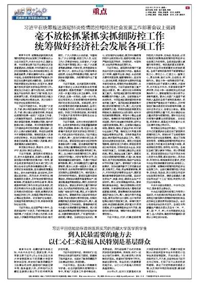 毫不放松抓紧抓实抓细防控工作 统筹做好经济社会发展各项工作
