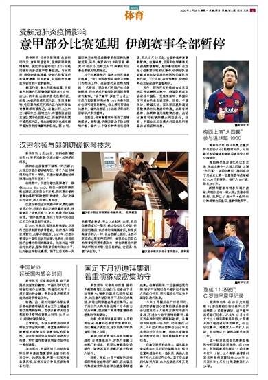 新快报讯 记者王敌报道 北京时间昨天,意甲联盟宣布,受新冠肺炎疫情影响,原定于当地时间2月23日晚间进行的多场意甲联赛延期。与此同时,据伊朗媒体透露,伊朗已经暂停所有体育赛事,