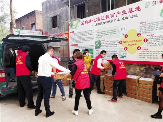“路上小心,顺利到达!”昨天下午,在众人的祝福声中,茂名化州市下郭街道石狗塘村一辆装载着101箱化橘红爱心防疫物资的车辆启程,驶往湖北武汉、黄冈、天门、荆门等新冠肺炎疫情严重地区,捐赠的物资将用于支援湖北疫情防控工作。这批爱心物资是由工业和信息化部电子第五研究所驻村工作队、化州市橘品种养专业合作社、石狗塘村民委员会联合捐赠的,它曾被列为石狗塘村的扶贫产品。 省定贫困村石狗塘村 脱贫率达100% 石狗塘村是工业和信息化部电子第五研究所定点帮扶的广东省定贫困村,该村共有贫困户54户181人。通过定点帮扶,石狗塘村已顺利达到广东省相对贫困村退出标准,脱贫率达到100%。“吃水不忘挖井人,是党和政府的好政策、帮扶单位的对口帮扶,村里才能脱贫致富。村民们始终怀着一颗感恩的心。在疫情防控紧要关头,我们希望尽自己所能,出一份力。”石狗塘村党支部书记许苏文如是说。 在帮扶单位主导下,石狗塘村建设了扶贫特色产业基地,基础生产的化橘红干果和凉果曾在石狗塘村脱贫过程中“立功”。该产业基地是工信部电子第五研究所在当地引入的特色帮扶项目,通过对化州当地特色农产品化橘红的深入调研,成立了橘品种养农民专业合作社。龙头企业、村委会、帮扶单位三方共建,成功打造了化橘红特色品牌“橘品”,将农产品加工业品质化、品牌化,有效推动了当地特色产业的转型升级。 特产化橘红 是新冠肺炎诊疗组方用药 2020年春节前后,新冠肺炎疫情在全国暴发,而当国家卫建委、国家中医药管理局发布《新型冠状病毒肺炎诊疗方案(试行第六版)》后,茂名特产化橘红被列入新冠肺炎诊疗组方用药。看到这个消息,驻村工作队队员及石狗塘村两委干部等人眼前一亮:化橘红正是石狗塘村的特色扶贫产品啊!“治疗方案中显示:在新型冠状病毒肺炎临床治疗期的普通型中医治疗中,化橘红对于湿毒郁肺证有疗效。化橘红是岭南道地药材、‘十大广药’之一,具理气宽中、去咳化痰之功,对改善肺功能、治疗急性肺损伤有良好效果。考虑到化橘红在疫情防治中的独特功效,我们商议决定捐赠此批爱心物资。在新冠肺炎严峻形势之下,积极践行企业社会责任,希望能对湖北的疫情防治工作做出一点贡献。”合作社负责人何桂锋说。 作出这个决定后,驻村工作队通过多种渠道积极联系湖北相关慈善和医疗机构,详细介绍化橘红的功效,最终获得了湖北省9家单位的认可,办理了相关预接收手续。而在物流配送方面,这次行动得到了中国邮政集团公司广东省化州市分公司的全力支持,捐赠物资将免费送至各单位指定接收地点。“本次共为湖北捐赠了660斤化橘红干果、1000罐化橘红凉果,合计101箱,价值约50万元。”工信部电子第五研究所人事处副处长、驻村第一书记陈俊喜介绍,此次接受捐赠的9家单位分别是武汉协和医院、武汉大学中南医院、武汉大学医院、黄冈市黄州总医院、天门市防疫指挥部、荆门钟祥市人民医院、浙江大学附属医院和山东大学齐鲁医院等援汉医疗队。爱心物资将定点发放给湖北一线的医务人员、执勤民警、安保环卫工人和社区干部。