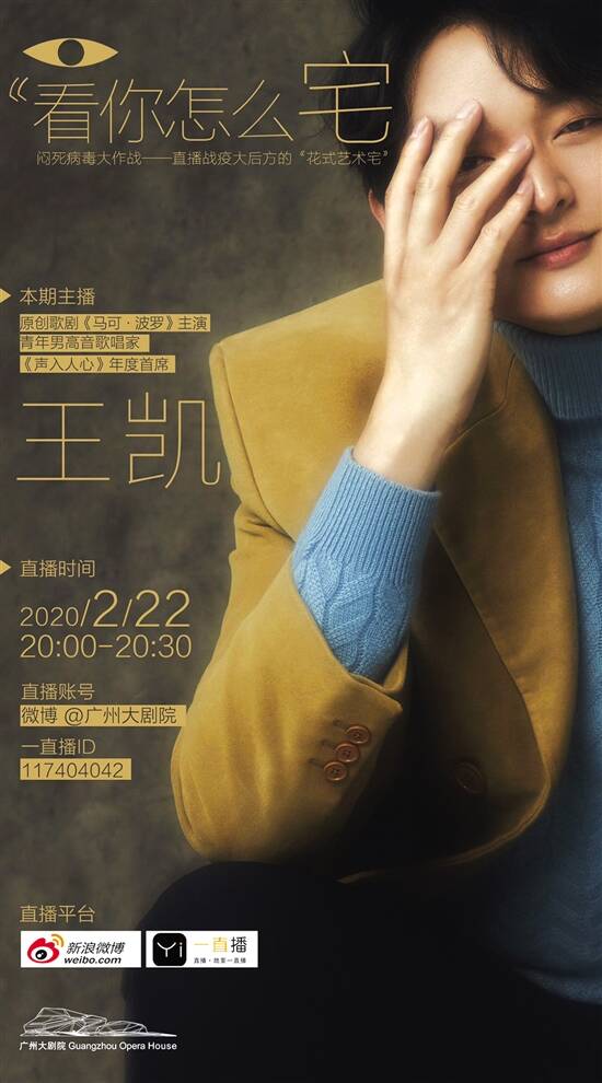 王凯分享“宅家抗疫”的充实生活 以往演出任务繁重的王凯,最近已经宅在家二十多天了,虽然暂时不能与喜欢他的观众在剧场见面,但他说“宅家抗疫”的日子也一样很充实。他有更多的时间陪家人,感慨妻子平时带孩子“太不容易了”;他认真地读每一封粉丝的来信和留言;也和很多朋友一样,开始“修炼厨艺”,以往不下厨的他,现在葱油面、蛋挞、爆米花都成了他的“拿手菜”。 今年,王凯将参与广州大剧院原创歌剧《马可·波罗》院庆十周年特别制作的演出,该歌剧5月将与广州市民见面。王凯曾获意大利贝利尼国际声乐比赛金奖、意大利威尔第国际声乐大赛中国赛区金奖、意大利佛洛伦萨乌尔巴尼亚国际声乐比赛金奖、意大利圣天使国际声乐比赛金奖等,也曾参演国家大剧院制作的歌剧《洪湖赤卫队》《赵氏孤儿》《方志敏》《长征》《金沙江畔》等。西方传统歌剧和中文歌剧对他来说都驾轻就熟,但《马可·波罗》却是个特别的作品,由西方人作曲,讲述东方故事,而且转调难度高,体力要求也高,整场演出“马可·波罗”几乎都没有下过台。为了演绎好这部中国题材的歌剧,唱出中文的魅力,王凯每天都在家练功。 直播中,王凯还自弹自唱了意大利民歌《请你别忘了我》《我的太阳》《请你告诉她》,并且展示了美声和通俗唱法在演绎同一首歌曲时的不同魅力,他希望通过自己的尝试和改编,可以更贴近年轻人的审美,让更多年轻人喜欢上古典音乐。直播最后,他不忘与粉丝一起为抗疫一线的医护人员加油,为武汉加油。 将有多位艺术家走进直播间 此次疫情悄然改变着所有中国人的生活,但办法总比困难多,没有什么可以阻挡乐观积极的中国人,艺术人员也在坚守,适应防疫形势下的新生活。广州大剧院表示,策划推出系列线上见面会《看你怎么宅》,正是希望通过艺术家们和粉丝、观众的“零距离”交流,让市民享受艺术生活的同时,相互鼓劲,一起期待走出阴霾后的春暖花开。在成功举办第一期线上见面会后,还将陆续有艺术家走进广州大剧院的直播间。据悉,第二期的直播将在2月26日晚举行,嘉宾是舞剧《花木兰》的主演郝若琦。因疫情影响,原定3月13日-14日在广州大剧院演出的《花木兰》延期至6月9日-10日。郝若琦因去年在综艺节目《舞蹈风暴》中的亮眼表现而为观众熟知,虽然暂时不能在剧场与观众见面,但相信很多人都想知道舞蹈家是如何“宅家抗疫”的。 除了线上见面会,广州大剧院还拿出了一批“压箱宝贝”陪大家一起宅,整理出了历年来的50多场精彩艺术讲座的影像资料,大众可以通过关注广州大剧院微信公众号重温和慧、汤沐海、田浩江、李光羲、王蒙、印青、刘震云、牟森、史航、于魁智、李胜素、刘雪枫、黄佟佟等众多艺术大家的妙语连珠。