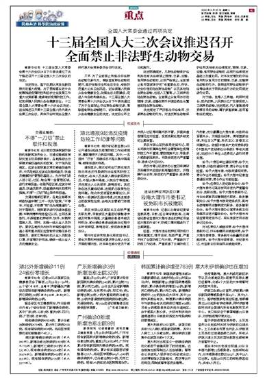 十三届全国人大三次会议推迟召开 全面禁止非法野生动物交易