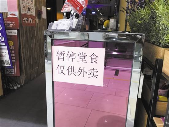 ■客村丽影广场多家餐厅贴出“暂停堂食 仅供外卖”的字样。新快报记者 何生廷/ 摄 |