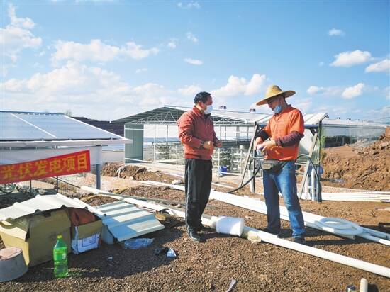 ■李俊勇(左)在光伏发电项目查看建设情况。 |