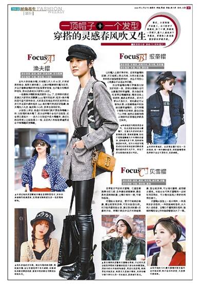 最近,大家陆续开始复工,出门防护不能疏忽,除了口罩,再搭配一顶帽子,整个人看起来干净整洁,更能给入春造型提供新的穿搭灵感。 Focus A 渔夫帽 适合发型:短发、披发、双麻花辫、双马尾辫 适合脸型:长脸、菱形脸、心形脸 去年大热的渔夫帽,时尚圈几乎人手N顶,不同材质的结合、高街元素的渗入,让渔夫帽兼顾时髦与实用,并且不像棒球帽那样对脸型要求较高,也不像太阳帽那样夸张,因此迅速成为大家的心头好。 一般戴渔夫帽配披肩发就很Chic了,但特殊时期还是建议大家把长发飘飘Look暂时收起来;短发+渔夫帽则是可盐可甜的存在,尤其是还没能去找托尼老师而头发已失去层次感的短发Girl,渔夫帽可将其好好隐藏;渔夫帽加入扎发、编发等小心机,效果也是很好的。 从脸型上来说,脸盘大的姑娘们就不要选择帽檐小的、比较塌的渔夫帽了,因为这样帽子会包不住脸型,还会更凸显脸大……选大小比较适中或大帽檐的,通过比例在视觉上让脸型显小一些,且亚洲人的脸型普遍更适合中等帽檐或宽帽檐。 Focus B 报童帽 适合发型:长披发、发尾内扣、低马尾、低发髻 适合脸型:长脸、方脸、菱形脸 让时髦人士爱不释手的,还有报童帽的回潮,不仅能搭上街头风格,与同为复古趋势的西式套装搭配更相衬,完全不用担心上班戴合不合适这种问题。 况且报童帽在帽子界算是比较友好的那一类,即使头围略大也可以戴蓬顶的报童帽,因为脑后有松紧带且帽檐硬挺、帽形总体上较柔软,戴进去更容易。其次只要头不是太大,宽松感还可以修饰头围;头型略微扁平的姑娘在戴报童帽时,还可将帽子微微向后倾斜,盖住后脑勺上半部,能把头型修饰得从侧面和后面看起来都是立体的。 Focus C 贝雷帽 适合发型:短发、披发、有刘海、麻花辫、发髻 适合脸型:长脸、菱形脸、圆脸 自带复古气场的贝雷帽,已重登潮流舞台好几季,各种戴法皆被解锁,最经典的是稍稍斜戴,让帽子倾向一侧,可修饰脸型。 对圆脸女孩来说,要尽可能朝后佩戴,露出前面的发梢,可拉长脸型比例。对方脸和菱形脸女孩,建议尝试斜戴+后戴的方法,将帽子朝后并且不对称地佩戴,留出前发梢,可以弱化颧骨、遮挡额头棱角。长脸女生可将贝雷帽的一边斜拉到耳根处,可分散长脸给人带来的视觉注意力。 贝雷帽从版型上一般分两种,一种是软趴趴没型的,一种是挺阔有型的,头大的人选前者,且帽口尽量挑宽松些的,挺阔的帽形会让你的脑袋像被加大了一圈。
