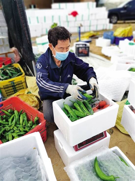 ■滞销的蔬菜有了销路,调文村村民在装蔬菜大礼包。 |
