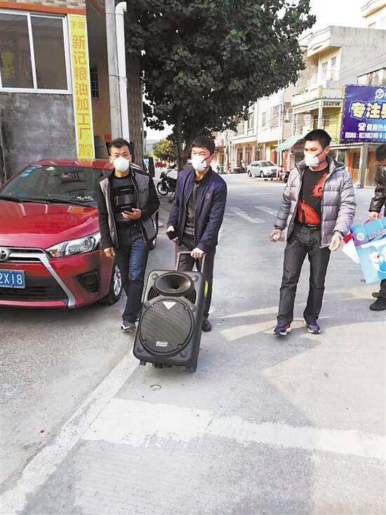 ■刘仕强等在村子里用移动音响进行防疫宣传。 |