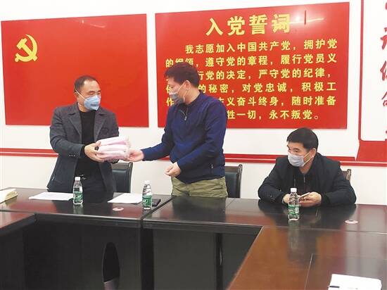 ■郑洪泉为石艮村筹措疫情防控物资,自购150只口罩给村里执勤人员。 |