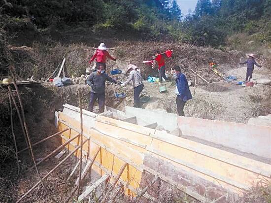 ■被冲坏的农耕水渠开始修建了。 |