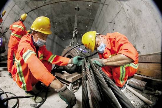 ■做足防护措施的施工人员在紧张施工。通讯员供图 |