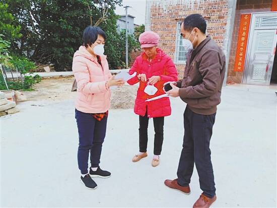 ■袁小雅给村民派发口罩,解决他们的防疫燃眉之急。受访者供图 |