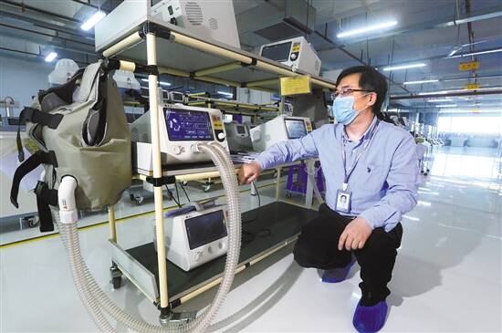■科研人员正在调试高频振动排痰系统。疫情发生后,由普门科技将社会慈善捐赠的一批高频振动排痰系统等呼吸康复设备准时运送到武汉协和医院西院、武汉市中心医院、武汉方舱医院等新冠肺炎防控定点医院,有力地提高患者救治水平。 |