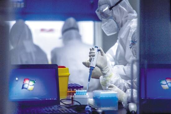■广东省卫生健康委指定的新型冠状病毒核酸检测定点,兰卫医学检验检测人员正在提取样本。 |