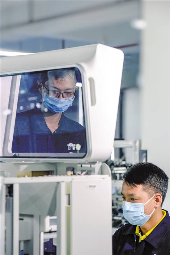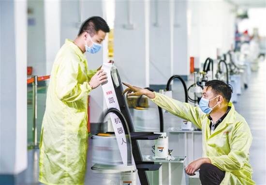 ■采写:新快报记者 李洁军 ■摄影:新快报记者 陈昆仑 勠力同心战疫魔 在松山湖高新区的广东东阳光药业生产车间内,100多员工正开足马力赶制抗流感药物。东阳光药业的谢工是在开车回江西老家过年的路上接到公司通知,他和家人立即驾车返回指挥生产。截至记者发稿时,该公司已在近10天内完成了8批48万盒抗流感药物的生产任务,目前有54万盒正在加紧生产中。 目前东莞市复工企业数量激增,为了助力各地政府支持企业复工,为复工人员提供安全保障,作为广东省卫生健康委指定的新型冠状病毒核酸检测定点单位之一的东莞兰卫医学检验所,在完成省、市任务之后,担负着提供复工人员新冠病毒核酸检测的筛查服务工作。在集团总部下达召集令后,各地的专业PCR技术人员志愿者分别从上海、南京、长沙驰援东莞实验室, 80余人的团队昼夜加班轮岗投入到这场抗疫阻击战中。截至2月25日,公司基因扩增实验室新冠病毒核酸检测能力已高达每天4500人份,这个团队以科学、规范、高效、奉献为企业构建一道复工安全屏障,让企业复工复产安心、放心。 沧海横流显本色 生物试剂制药企业在行动,高科技企业也只争朝夕。 在学习贯彻落实习近平总书记关于新冠肺炎疫情防控工作的重要讲话精神,松山湖园区在集中科技手段攻关,精准施策上找到方向,科技人员牢牢把科技攻关作为主攻方向,攻坚克难,不断研发出防疫新产品。 在新冠肺炎指定省级治疗医院——中山大学附属第三医院的过道上,一台白色梯状的机器人在忙碌地“奔波”着,这款无接触式医用配送机器人已上岗坚守防疫一线。疫情发生以来。广东凯宝机器人科技有限公司迅速启动应急机制研发抗疫医用机器人。工程技术人员针对医院隔离区的需求,研发制作出可提供配送、巡航播报等功能的新型配送医用机器人。2月17日,广东凯宝机器人科技有限公司向中山大学附属第三医院捐赠了两台凯宝配送机器人,总价值近10万元。 3D打印应急全封闭护目镜是由东莞理工学院3D打印与智能制造研究中心紧急研制的。接到任务,卢秉恒院士团队的骨干成员,陈盛贵老师与团队中的几位成员临时组建研发小组,在很短时间里在线办公进行设计研发、购买配件、加工组装等方式制作了这批3D打印应急全封闭护目镜。首批约300套的护目镜将捐献给广东、陕西、河南、湖北一线的定点收治医院、部队军工厂,以及其他单位防疫一线人员。新快报记者在生产车间看到,第二代3D打印应急全封闭护目镜的防雾气功能正在进行有效改善。 共克时艰迎复工 在这场疫情防控的人民战争总体战阻击战中,高科技企业和生物企业担负着重要角色,在如何做好安全防护前提下的复工复产是松山湖高新区工作的重中之重。 面对节后返园高峰的来临,松山湖疫情防控指挥部结合园区实际,实施企业分片巡查督导,组建20个企业复工指导工作小组,将园区企业分布的113个地块按地理区域划分为20个片区,每个片区又安排1名“片长”负责该区域防控工作。各工作组深入企业一线,现场指导企业按照“四个到位”做到分级、有序和安全复工复产。截至2月底,松山湖174家规上工业企业已复工170家,复工率98.26%,已返岗人员约8.6万人,返岗率68.55%;产值排名前20名的规上工业企业已全部复工,产值排名前100名的规上工业企业复工已达96家;81家东莞市重点企业已复工75家。一场抗击疫情复工复产的人民战争正在松山湖如火如荼进行。