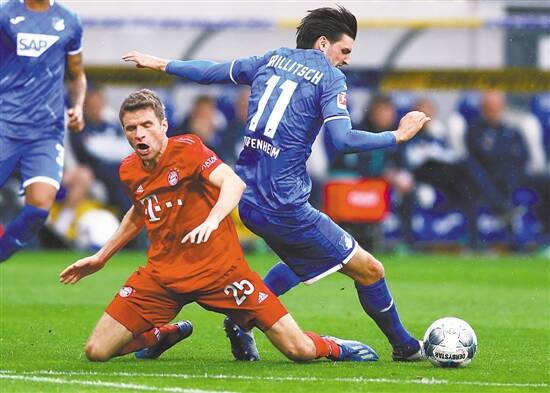 ■当日的比赛没有悬念,拜仁慕尼黑6∶0大胜霍芬海姆。 新华社发 |