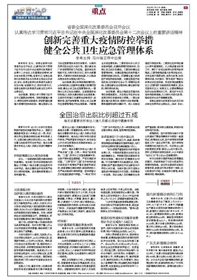 创新完善重大疫情防控举措 健全公共卫生应急管理体系