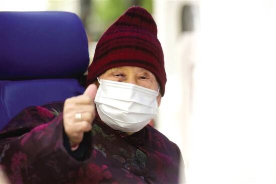 ■经历生死考验,97岁的付奶奶给医务人员竖起大拇指。 |