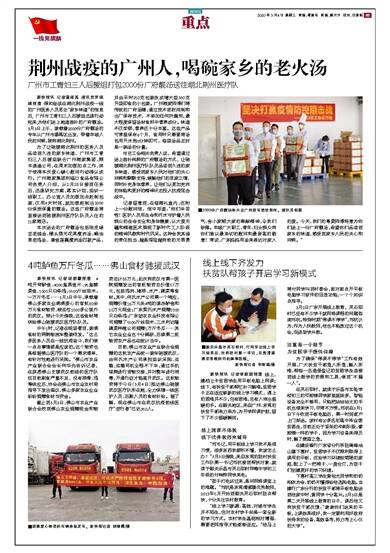 新快报讯 记者黄闻禹 通讯员罗瑞雄报道 得知奋战在湖北荆州战疫一线的广州医务人员思念“家乡味道”的信息后,广州市工青妇三人后援组迅速行动起来,为他们送上地道滋补的广府