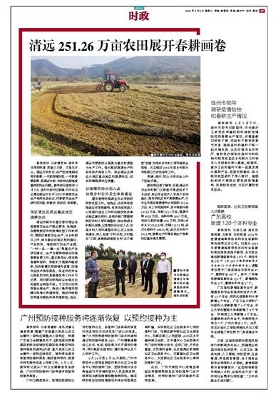 新快报讯 记者潘芝珍 通讯员冯英阳报道 灵海三月春,万里无片云。清远万顷良田,在严控疫情期间同步春耕,一手抓疫情防控、一手抓春耕备耕,是清远市委、市政府近期高度重视的