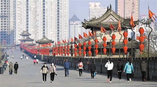 ■国内部分景区已开放,但游客仍不多。图为3月4日,游客在西安城墙游览。新华社发 |