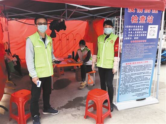 ■44011086站的站主段非(右一)仍在高塘石村检查点忙碌。 |