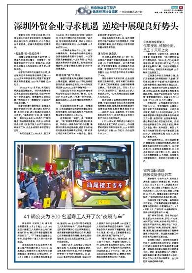新快报讯 记者许力夫 通讯员岳韵萱报道 3月2日晚上11点,800名四川籍复工人员顺利坐上专门来接他们的41辆公交车准备直接回到所在的工厂。“下了高铁后直接坐上专车,