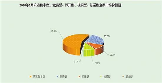 1月份,乐透数字型彩票销售149.69亿元,同比减少99.18亿元,下降39.9%;竞猜型彩票销售68.04亿元,同比减少96.10亿元,下降58.5%;即开型彩票销售27.77亿元,同比增加5.93亿元,增长27.1%;视频型彩票销售26.50亿元,同比减少18.09亿元,下降40.6%;基诺型彩票销售0.10亿元,同比减少0.01亿元,下降7.8%。1月份,乐透数字型、竞猜型、即开型、视频型、基诺型彩票销售量分别占彩票销售总量的54.9%、25.0%、10.2%、9.8%、0.1%。 1月份,与上年同期相比,全国31个省份彩票销售量均出现下降,其中,江苏、广东、山东、浙江和河南减少额较多,同比分别减少19.37亿元、19.29亿元、18.08亿元、14.54亿元和11.66亿元。 乐透数字型、竞猜型、即开型、视频型、基诺型彩票市场份额图