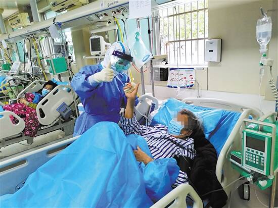“转出”“出院”……每天早上交接班,我竖起耳朵期盼能听到这样的字眼,每次捕捉到,内心便涌起一阵阵难以言喻的喜悦。 2月27日,我又听到这些词:“昨日ICU转出2人,重症区出院1人……”我和同来支援荆州市中心医院的队友们相视一笑,美好的一天又开始了。 “护士长,7床的阿叔今天转出ICU了,他拉着我的手感谢我,我好开心!”晚餐时,护士小妹兴奋地和我分享。我依稀记得,7床阿叔刚开始情绪低落,说什么都不愿意接呼吸机,也不配合治疗,就是在护士小妹一次次劝说下才改过来的。 同时转出ICU的还有6床阿姨。我第一次进病房时,这位阿姨因为气促、呼吸困难,需要通过持续无创呼吸机辅助呼吸。这几天,经过精细化治疗,阿姨开始间断脱机,活动时已经无气促表现了。经过医疗团队全面评估,可以转出ICU,回到普通隔离病区。得知这个消息,阿姨情不自禁露出笑容,一个劲儿对照顾她的护士说:“姑娘,真好,你们真好啊。” 出院的是重症病区31床的“倔强老奶奶”。4天前第一次看到她时,她需要低流量吸氧,说话断断续续。老奶奶告诉我:“我没有牙齿了,我想喝粥,吃了东西才能快点康复。”80岁高龄的奶奶,顽强地和新冠病毒斗争着,这让我感动不已。为了给她更好的照顾,我联系营养科专家专门为她制定了半流质饮食的营养方案,还把广东医疗队送给病人的营养膳食粉送到她手里。在我们的悉心照料之下,奶奶今天就可以出院了。本想着让她坐轮椅出院,奶奶却把手一挥,倔强地说:“我这把老骨头好得很,我要自己走出去!”我们都被倔强又可爱的老奶奶逗笑了。 感受到患者的信任,看着好转的病人越来越多,危重症区和重症区的病人越来越少,感觉所有的努力都是值得的!