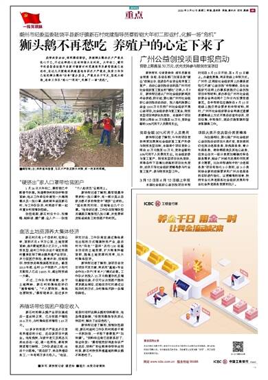 疫情来势汹汹,饲料骤然断供。养殖狮头鹅的农户严俊龙忧心不已,不过这种担心没有持续太长时间。大年初二,潮州市纪委监委驻饶平县新圩镇新石村党建指导员蔡哲铠就已经返村,没过几天便跑到养殖基地告诉农户严俊