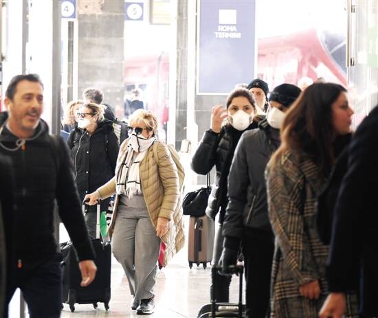 ■3月9日,在意大利罗马泰尔米尼火车站,人们戴着口罩出行。 |