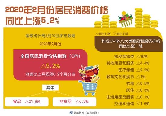 ■新快报记者 郑栩彤 蔬菜肉蛋价格下降 2月CPI上行的主因是食品价格同比上涨21.9%。其中,猪肉价格同比上涨135.2%,影响CPI上涨约3.19个百分点;鲜菜价格上涨10.9%,水产品价格上涨2.8%,蛋类价格上涨1%,鲜果价格下降5.6%。赵茂宏表示,食品价格上涨较多主要是因为各地不同程度实施交通运输管控,物资配送成本上升等。受“居家”要求与“避险”心理等因素影响,部分居民囤购行为也助推价格上涨。 新快报记者在广州市价格监测系统上看到,多种鲜菜价格2月底前仍较“坚挺”,但进入3月份,本地菜心、西生菜、芥兰、青豆角等所种蔬菜价格均明显回落。昨日,本地菜心、西红柿和芥兰每公斤的全市均价为8.22元、9.16元和10.13元,与上月同期相比下降幅度都在20%左右。猪肉、鸡蛋和多种水产品价格也从2月底开始下降,猪排骨昨日全市均价为96.94元/公斤,每公斤售价较上月同期下降9元,价格已逐渐靠近春节前水平。 在车陂四社农贸市场、钱大妈等售卖点,销售人员向记者表示,目前批发市场上生猪数量已逐渐回升,批发价有明显下降。除交通不畅问题有所缓解外,天气转暖也促使多种蔬菜价格下降。 CPI预计将逐季回落 从非生活必需品看,2月份理发店等部分商业和服务网点暂停营业,部分消费需求受到抑制,除医疗保健外的多种类别价格均在下降。机票、理发和宾馆住宿价格环比下降达到7.8%、2.5%和1%。新快报记者在飞猪、携程等多个平台上看到,为拉动消费,“旅行打折预售”“商旅酒店优惠”等活动正在推出,不少国内机票还打出低于1折的折扣。 从PPI看,由于国际原油价格大幅度下降,2月份石油相关行业产品价格出现大幅度波动,带动2月份PPI环比略降。其中石油和天然气开采业、石油等燃料加工业价格环比由涨转降。但由于原材料价格上涨等因素,2月份消毒产品等医疗防护物资价格有所上涨。 申万宏源认为,由于近期沙特和俄罗斯转向竞争性石油增产降价,对全年PPI将形成一定拖累,预计3月PPI跌幅扩大至1.2%。而由于国内疫情趋于缓和,食品和CPI涨幅趋于下降,预计3月CPI同比回落至4.8%左右,高基数下CPI预计逐季回落。