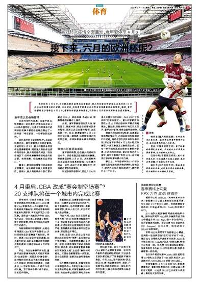 新快报讯 记者高京报道 日前有欧洲媒体率先披露,2019-2020赛季CBA联赛将在4月初重新开启,比赛将采用赛会制,同时在联赛刚刚恢复的初期阶段,将不允许观众入场观赛。虽然这