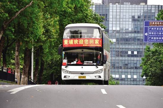 ■广州市黄埔区派出大巴接异地务工人员回城开工。 |