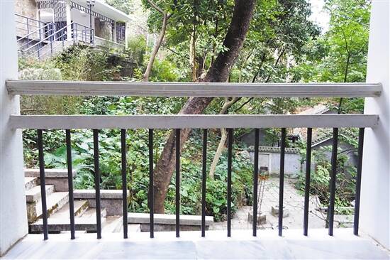 ■甲座台阶恢复了轻巧灰色铁栏杆。(左为原状,右为复原) |