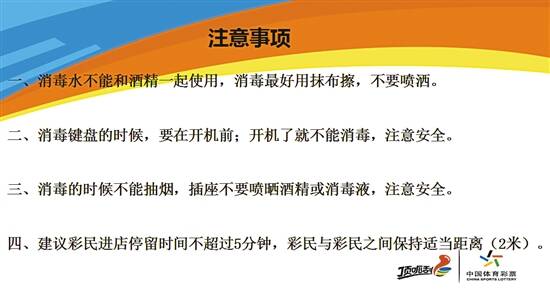 ■新快报记者 陆妍思 通讯员 粤体彩 佛山:落实全面检查工作,实行差异化恢复销售 佛山体彩加强实体店疫情防控应急演练,制定差异化恢复销售措施,在符合条件的专营实体店率先开售,并且明确实体店分为购彩者可进店购彩和不进店购彩的两种方式销售,确保所有恢复销售的实体店符合防疫要求。在恢复销售后,佛山体彩仍将对实体店进行疫情防控工作的检查,确保做好各项防控工作。 韶关:制定五条疫情防控措施,有序实效开展复工复产 为有序实效开展体彩实体店复工复产,韶关市体育彩票管理中心制定了五项彩票销售疫情防控措施:一要加强疫情防控严肃性,所有体彩从业人员一定要签订健康情况承诺书;二要做好场所消杀工作,每天做好测量体温及记录,与购彩群众交谈距离保持在1米以上,结账尽量采用转账支付形式;三要确保复工复产必需的测温仪、口罩、84消毒水等物资齐备;四要落实好疫情防控方案,做好教育培训与防疫指引,购彩者不得在店内逗留时间过长,要求所有实体店门口张贴防疫指南及入店须知公告;五要成立工作小组,落实现场巡查。 惠州:防疫复工两手抓,并对实体店追加补助 惠州体彩积极做好恢复销售准备工作,要求实体店按规定做好开业准备:一是防疫物资要齐备,做好个人防护;二是检查工作要落实,提醒购彩者戴口罩;三是复工复产要有序,保持安全距离排队购彩,做到不聚集、不扎堆。所有实体店认真学习了开业防疫指南,已配齐防控物资,做好了门店开业防疫准备工作。 另外,为降低新冠肺炎疫情对惠州市体彩实体店的影响,惠州市体彩中心在省体彩中心对全省实体店扶持的基础上,对本市在售实体店追加补贴:补贴标准为符合条件的专营实体店一次性补助经营补贴1000元和防疫物资补贴300元;兼营实体店一次性补助经营补贴500元和防疫物资补贴300元,补助总额近100万元。 潮州: 做好疫情防控工作, 发放补贴及防疫图书 潮州体彩中心要求实体店需做好每日店内消毒工作,销售人员需戴好口罩,建议购彩者进店停留时间不得过长并保持适当距离,关注店内人员每日健康情况,有情况及时上报。 为切实解决复工复市存在的困难,潮州体彩中心为专营实体店发放1000元、兼营实体店发放500元的经营补助及防疫物资补贴,并为所有体彩实体店配备《新型冠状病毒感染防护》图书及店内外温馨提示,做好各项开市准备工作。