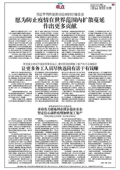 愿为防止疫情在世界范围内扩散蔓延 作出更多贡献