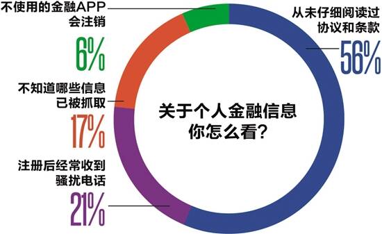 [大数据高速发展的背后,不断暴露的数据隐私安全问题再次成为焦点。近期,金融标准化委员会下发了《个人金融信息保护技术规范》(下称《规范》)不仅对个人金融信息从敏感度进行了分类,还对个人金融信息在收集、传输、存储、使用、删除、销毁等各环节的安全防护提出要求。新快报记者在调查多家金融APP后发现,各家APP的隐私条款字数少则十几页多则几十页,大多数用户都是匆匆翻过然后勾选“同意”,根本不知道里面到底有没有“坑”。而记者的一项网络调查显示,超过半数的网友在注册金融APP前“从未仔细阅读过隐私条款”。 ■新快报记者 许莉芸] 你的个人金融信息到底有哪些? 去年以来,监管多次打击金融APP搜集用户个人金融信息乱象。这背后,根本原因在于用户与企业之间存在严重信息不对称的现象。新快报记者近日发起的一项关于个人金融信息的网络调查中,有超过2成的网友表示,注册金融APP后经常收到骚扰电话;近两成网友表示,不知道哪些信息会被抓取,抓取后又怎么被应用?是否被授权给第三方?这些信息他们基本没有任何认知。 “直接点击同意,没注意过协议条款。”有用户对新快报记者表示。然而,每次下载金融APP后,《用户协议》和《隐私条款》中都规定了大量的关于个人信息使用的规范和原则,如果用户不仔细阅读很有可能自己的个人信息被“卖”了。 对于很多用户而言,“蒙查查”的是他们连个人金融信息是啥都没搞清楚。 《规范》中,对个人金融信息进行了细致的分类,按照敏感程度从高到低,分别分为C3、C2、C1。其中C3类别信息主要为“用户鉴别信息”,就是如何证明“你是你”?包括银行卡数据、卡片验证码、银行卡密码、账户登录密码、账户交易密码,还有指纹等鉴别用户的生物识别信息等。这类信息一旦遭到未授权查看,对个人财产安全危害最为严重;C2类别信息则是识别用户身份和金融状况的个人信息,如支付账号、证件信息、手机号码、家庭信息、个人财产信息,还有用户鉴别辅助信息如动态口令、短信验证码等;而C1类别信息主要为机构内部使用的个人信息,与上述两种相比,这类个人信息敏感度较低,如账户开立时间、开户机构等。 “个人金融信息分级,利于行业对于用户关键敏感信息的使用、处理,也给消费者隐私安全提供了证据。”有业内人士表示。不过,新快报记者在调查中发现,大多数金融APP均未对个人金融信息分类,少数APP也则只是简单粗暴地将个人金融信息分为“一般个人信息”和“敏感个人信息”。 “应该在具体场景中评估个人金融信息在其中的作用、可能遭受未经授权的查看或未经授权的变更后所产生的影响和危害。”观韬中茂(上海)律师事务所合伙人吴丹君表示,比如在《规范》中表示,通过数据挖掘等技术可能在组合、关联和分析数个低敏感程度数据后产生具有高敏感程度的信息,因此,应对汇聚融合后的个人金融信息进行重新识别以确定类别。所以,个人金融信息要看具体使用场景,也存在大数据分析后低敏感度信息转化成高敏感度信息的可能性。 遵循“最少且必要”原则 在注册各类金融APP之前,用户都需要同意《用户协议》和《隐私条款》,只要勾选“同意”则意味着条款中关于个人信息抓取、使用等各项规则。“2019年是个人金融信息监管元年,今年可以说是合规元年。”有业内人士对新快报记者说。 实际上,去年因为APP超范围收集信息被监管点名的金融机构和互联网金融公司不在少数。去年底,央行向部分金融机构下发《关于发布金融行业标准加强移动金融客户端应用软件安全管理通知》中就规定,“在收集、使用个人金融信息时不得以默认、捆绑、停止安装使用等手段变相强迫用户授权,不得收集与其提供金融服务无关的个人金融信息。” 此前,北京市盈科(广州)律师事务所律师徐进伟就曾对新快报记者表示,个人信息共享应遵从最少和必要的原则,否则一律不得采集和查询。《规范》中也提及,对于个人信息收集要采取“最少够用”原则。工行广东分行相关负责人也对新快报记者表示,应该按照“事先取得客户书面授权”“知所必需最小授权”原则,依法合规收集、保存、使用客户个人信息。“最大程度减少个人信息在APP中停留的时间,降低个人信息泄露的风险。”业内人士表示。 同时还要求收集个人信息类型应该与产品或服务的业务功能有直接关联。如拉卡拉APP的《隐私政策》中显示“信贷业务,需要位置信息、设备信息和其他必要信息,以完成交易”。但是位置信息和设备信息,与信贷业务并没有业务关联关系,即使没有位置信息和设备信息也不影响正常的信贷业务。 此外,新快报记者发现大型集团公司旗下各子公司中个人信息共享是常态。如小米金融APP《隐私协议》披露将与集团共享信息,“我们可能会向小米生态系统公司披露您的个人信息……小米生态系统公司可能不时与小米金融共享我们产品相关数据。”而根据近期国家标准化委员会下发的《信息安全技术个人信息安全规范》中规定,“不应通过捆绑产品或服务各项业务功能的方式,要求个人信息主体一次性接受并授权同意其未申请或使用的业务功能收集个人信息的请求。”有业内人士对新快报记者表示,“这意味着通过一个APP,集团公司一次性拿到用户信息授权,能够应用到集团许多家子公司