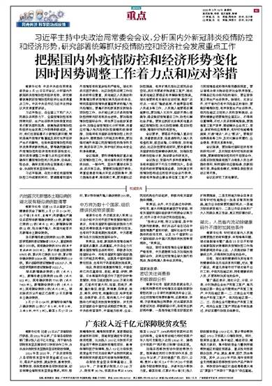 把握国内外疫情防控和经济形势变化 因时因势调整工作着力点和应对举措