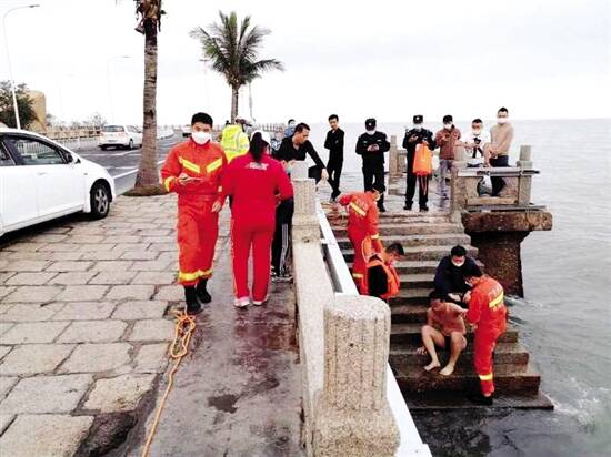 ■投海男子被消防人员和民警救出。 通讯员供图 |