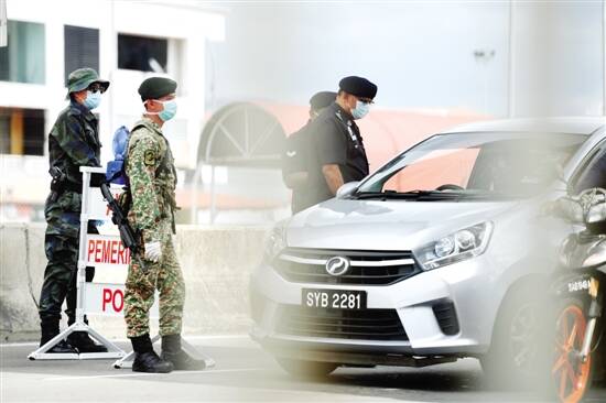 22日,在马来西亚沙巴州首府哥打基纳巴卢,士兵协助警方执行限制措施。 马来西亚18日起在全国范围内采取为期两周的严格防疫措施:禁止民众在非必要情况下外出;禁止在未获得允许的情况下跨州出行。马卫生部22日说,截至当天中午12时,该国新增123例新冠肺炎确诊病例,累计确诊病例增至1306例,累计治愈出院139例,累计死亡10例。新华社发