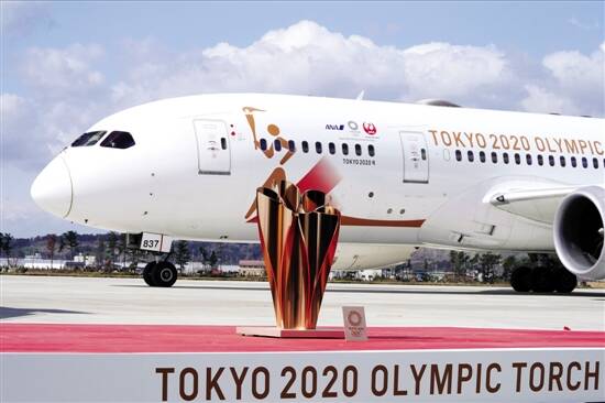 ▲ 3月20日,载有东京奥运会圣火火种的飞机降落在日本宫城县松岛。新华社图 |