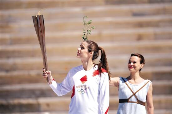 ▲东京奥运会圣火交接仪式在雅典举行。 新华社图 |